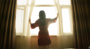 月亮从地平线上升起,她变得柔和并缓缓转动。直到晨星开始与之争辉,朝露吹进了我们的车窗。